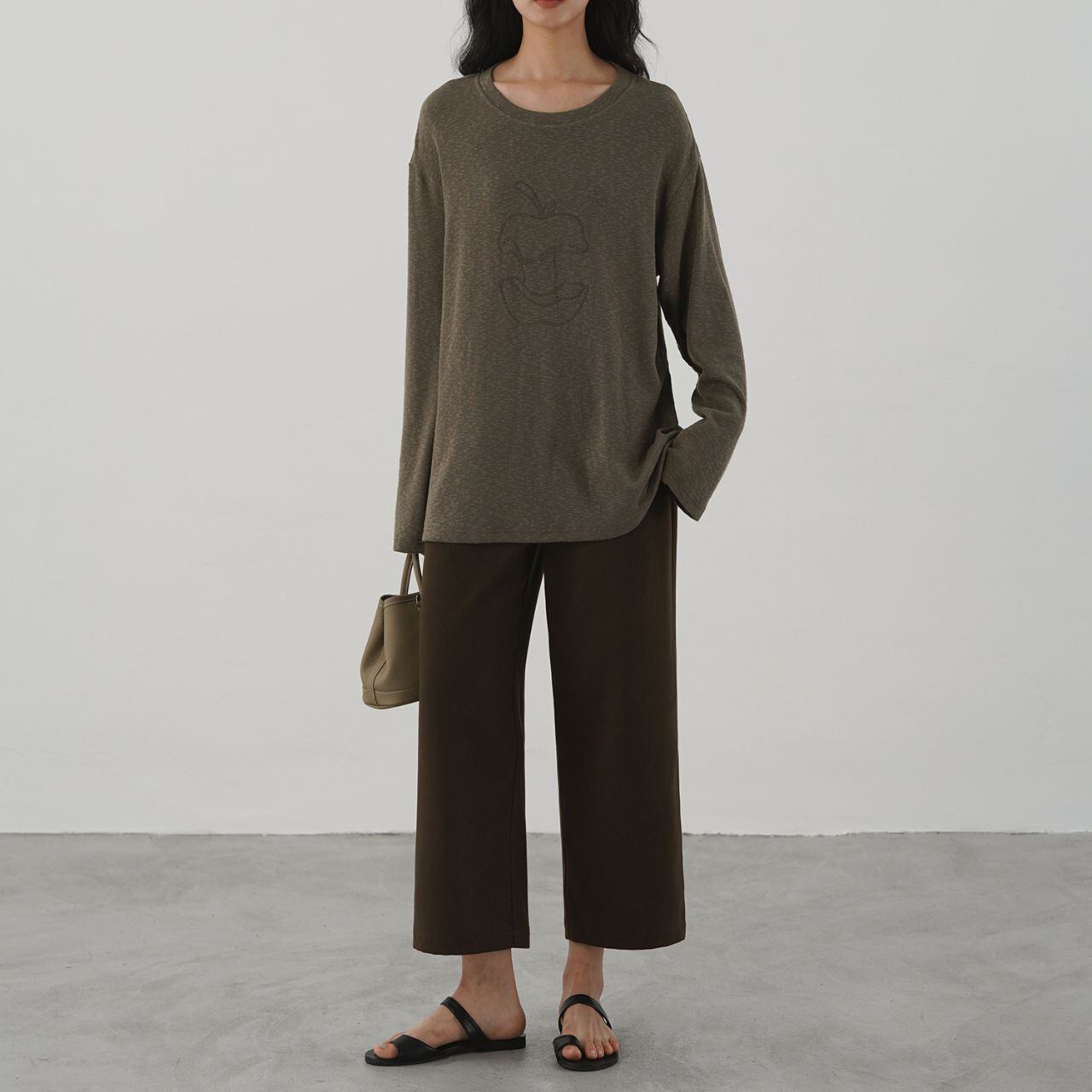程よくゆとりを持たせたシルエットは、歩くたびに柔らかなドレープを描き、シンプルなトップスを合わせるだけで上品に仕上がります。