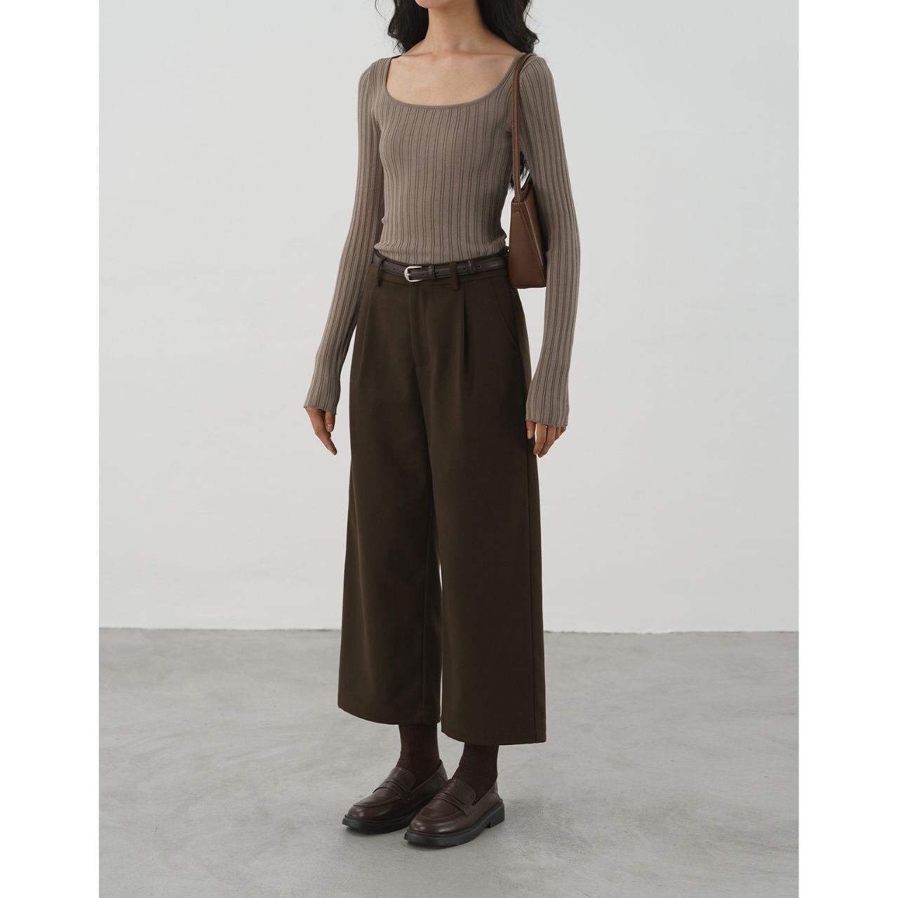 クラシックブラウンタックワイドクロップドパンツ 00164