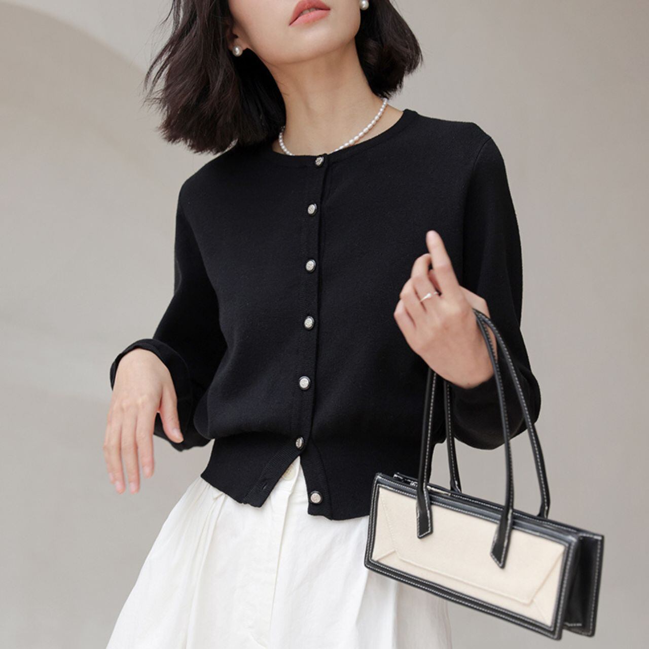 ほどよくコンパクトなシルエットで、スカートにもパンツにも好相性。