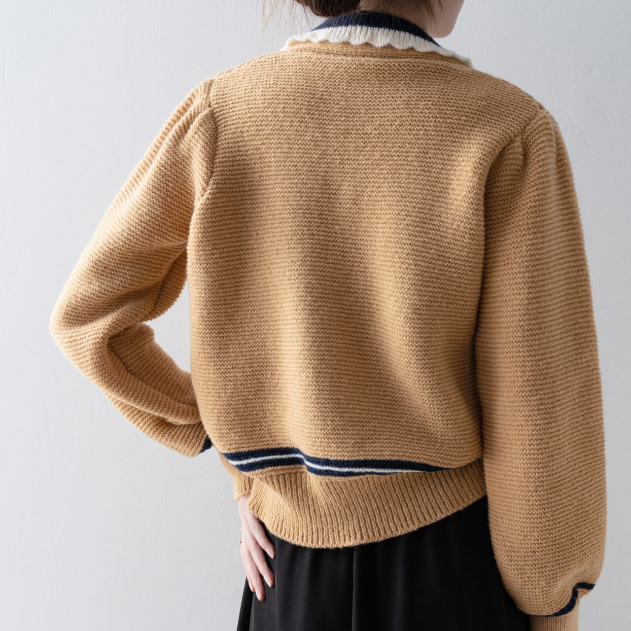 バイカラーレトロボタンショートカーディガン 00178