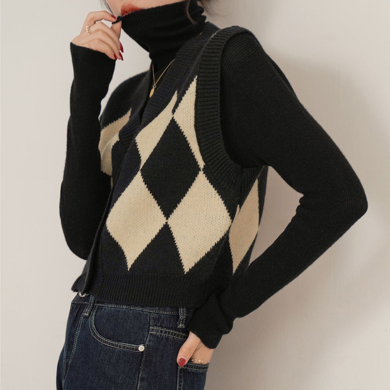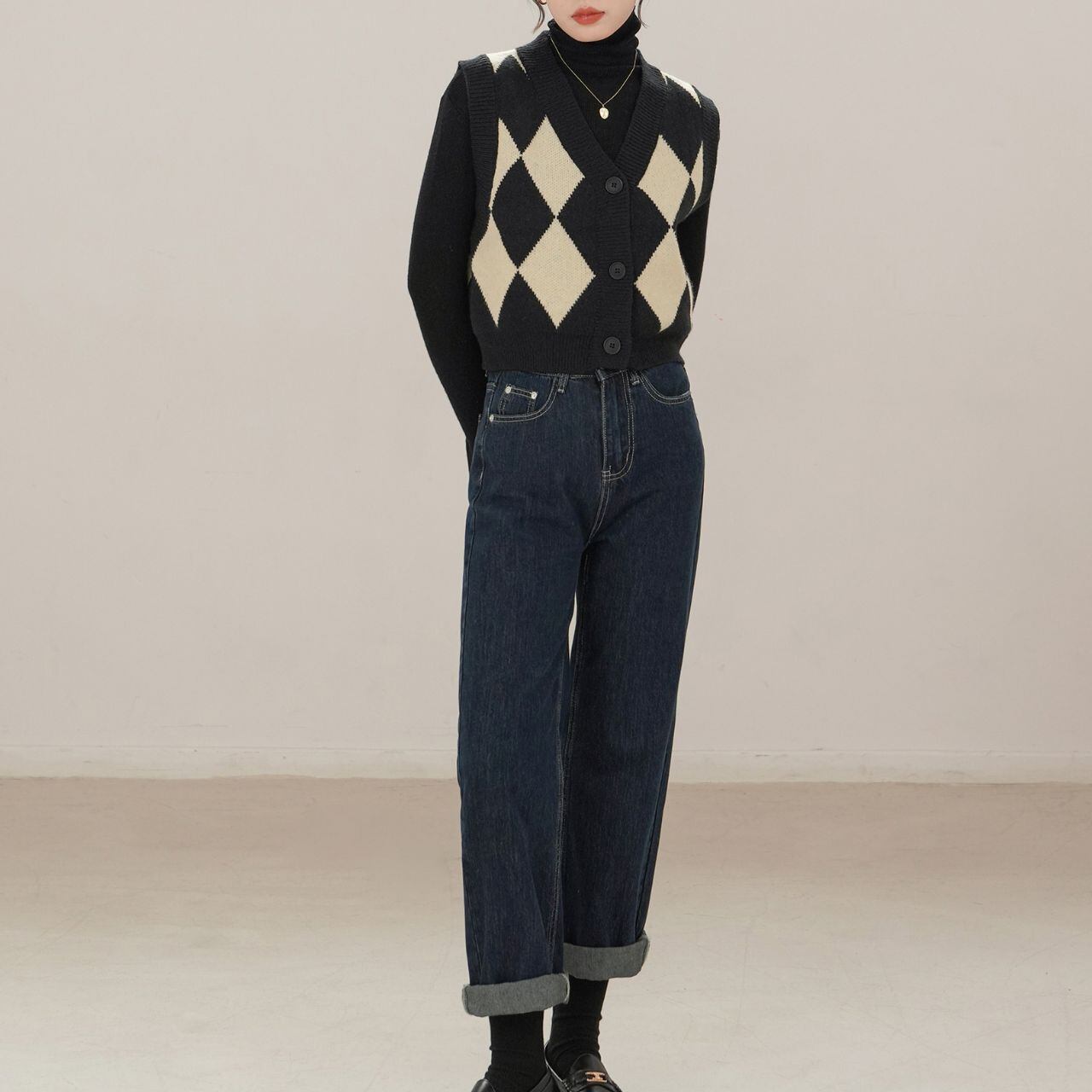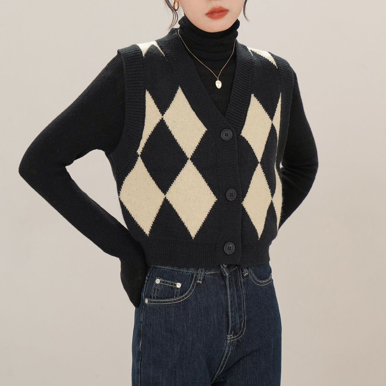 アーガイルフロントボタンニットベスト 00183