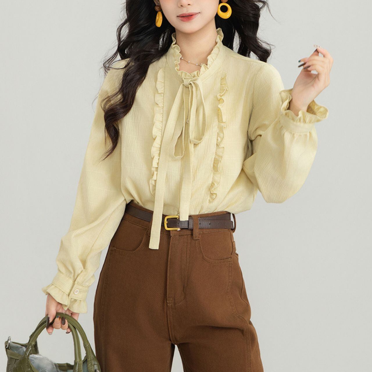 フロントフリルスタンドカラーリボンタイブラウス 00188